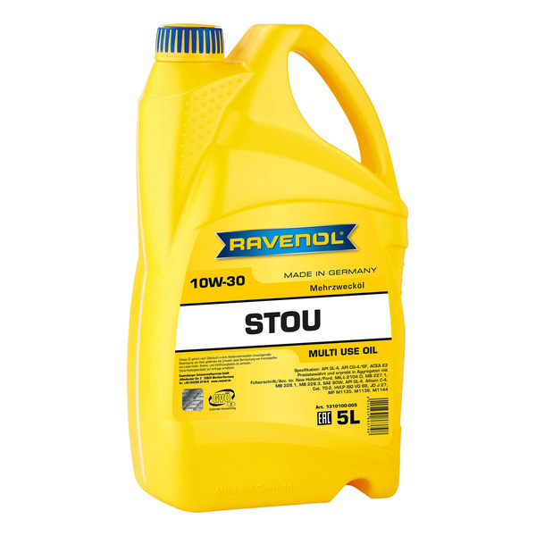 RAVENOL STOU SAE 20W-40 универсальное минеральное тракторное масло, предназначенное для сельскохозяйственной техники, экскаваторов и строительной техники, разработано на основе высококачественного, очищенного от сольвентов минерального базового масла. Является специальным продуктом, требующим профессионального подхода к выбору. Соблюдайте рекомендации производителя по подбору жидкости, порядка и периодичности её смены.