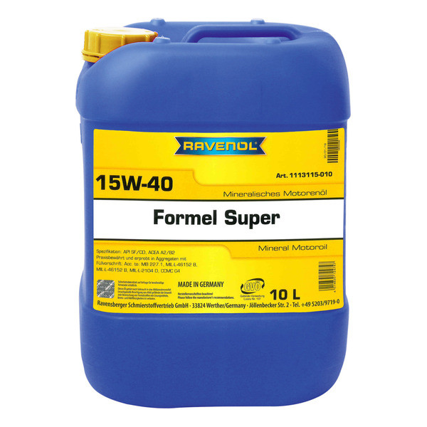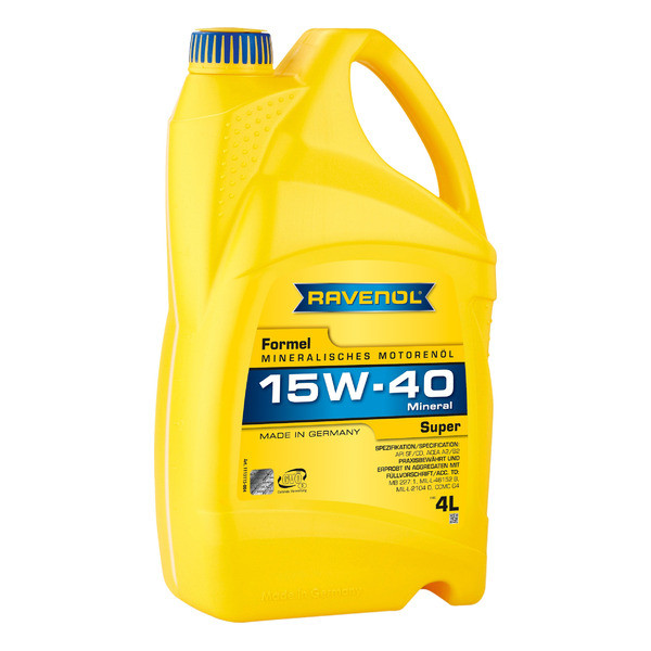 RAVENOL Formel Super SAE 15W-40 – минеральное моторное масло, изготовленное для легковых бензиновых и дизельных моторов с и без турбонаддува и коммерческого автотранспорта.